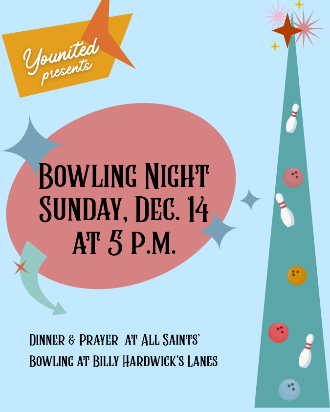 All Saints Episcopal Church 1508 S White Station Rd, MemphisThe youth of the diocese (6th–12th grade) are invited to gather at All Saints’ Episcopal Church (1508 S. White Station Rd., Memphis) on Sunday, December 14, for an evening of prayer, dinner, and bowling. We’ll meet at All Saints’ at 5 p.m. for prayer and a meal, then walk across the street to Billy Hardwick’s […]